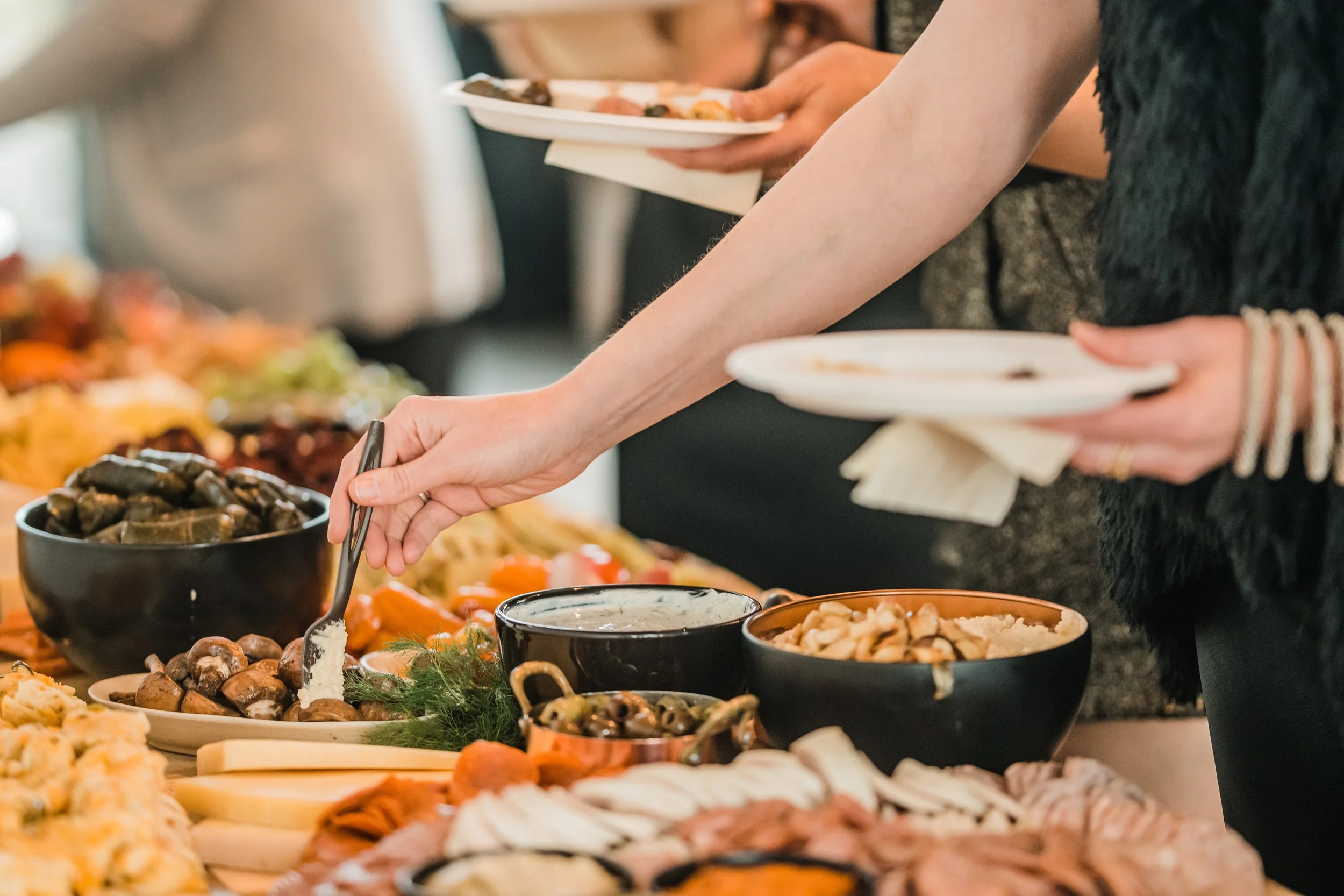 Depending on the size of your event, we usually recommend our XL Grazing Boards which are $30 per person and provide a combination of all the stationary boards.
